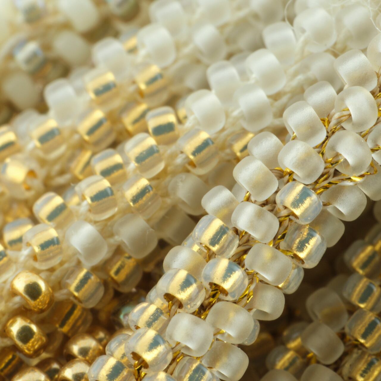 独特の形状とビーズの風合いが魅力のヤマブシタケのブローチ。ナチュラルな色合いですがアクセントの効いたデザインが目を引きます。 針状に編んだビーズを40本組み合わせて作っており、ボリュームがあり華やかな印象です。ビーズをふんだんに使用しているため重さがあります。薄手の洋服よりもざっくりとしたニットやコートに着けるのがおすすめ。