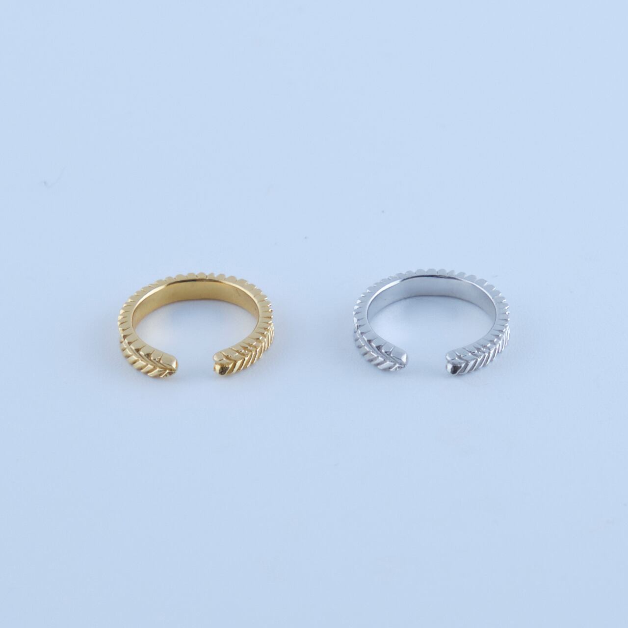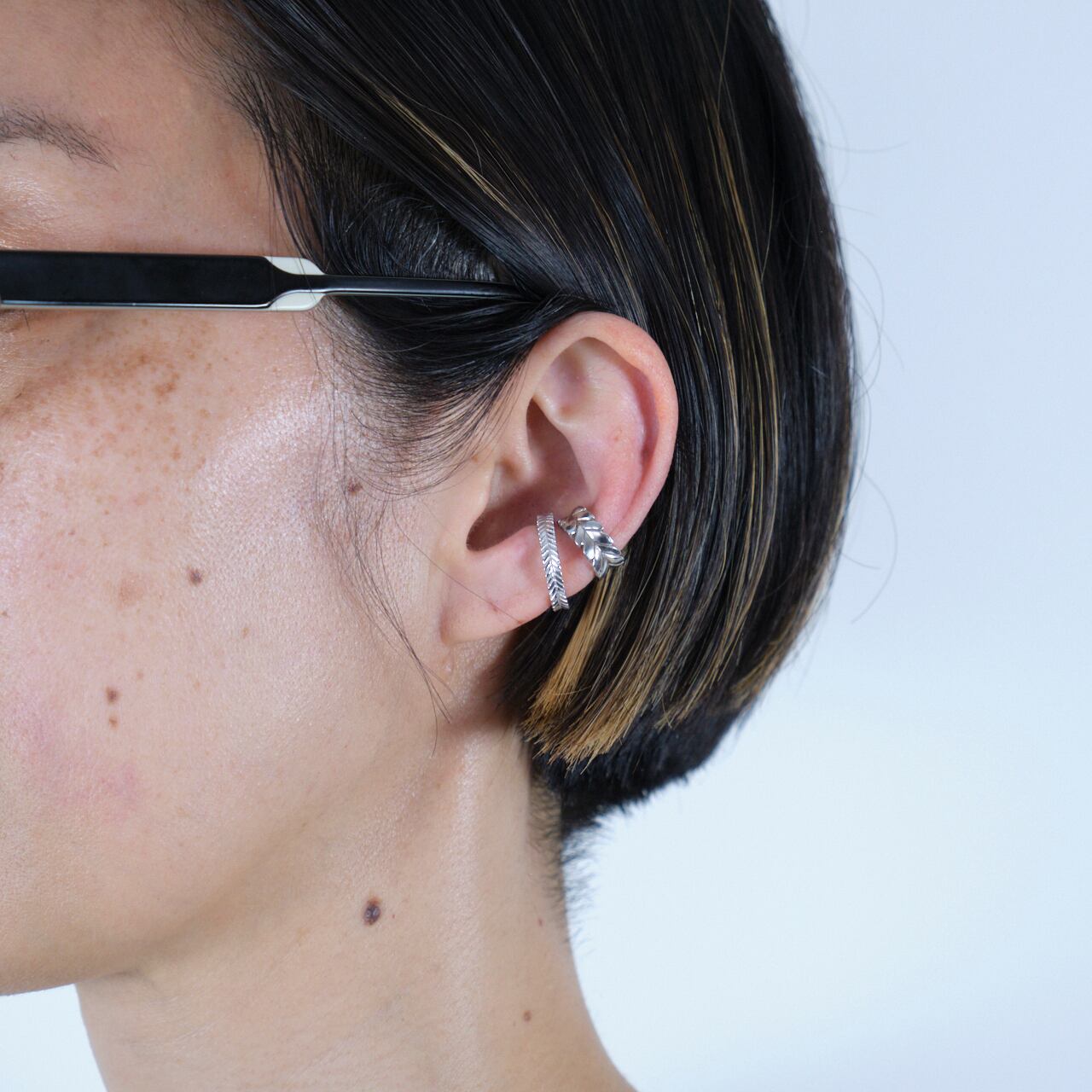 今までのギンヨウアカシアイヤーカフよりやや大きめの輪っかのデザイン。