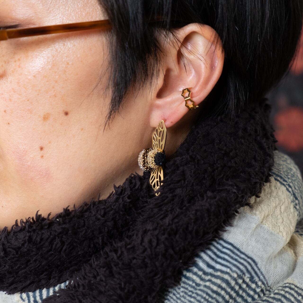 ひとつでシンプルにつけてもよいですし、一緒にクマバチやミツバチのピアスを合わせるのもおすすめです。