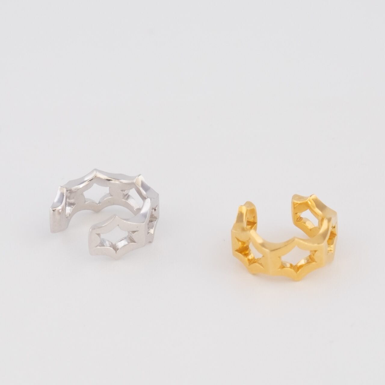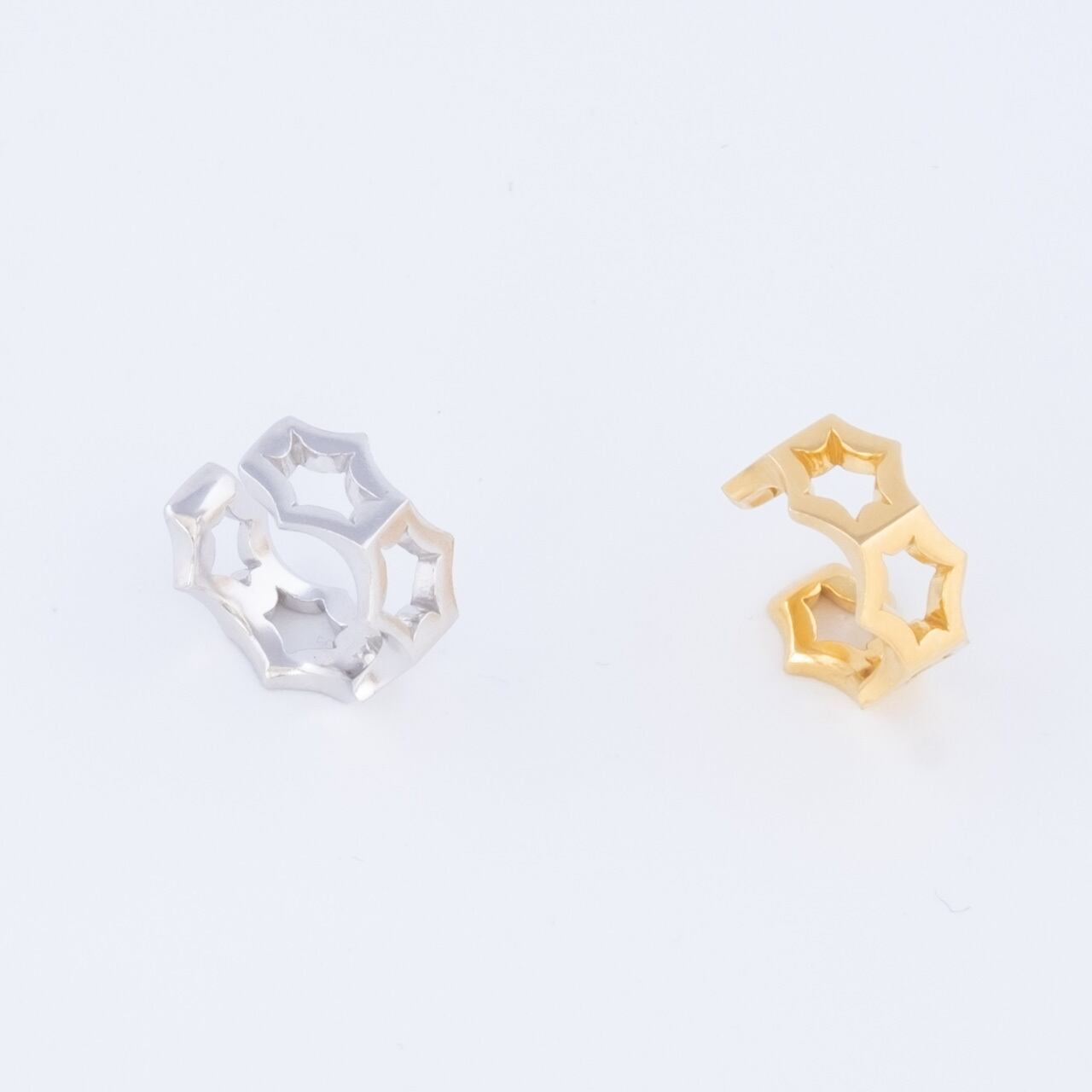 六角形の蜂の巣をモチーフにした「ハチノス」イヤーカフ。