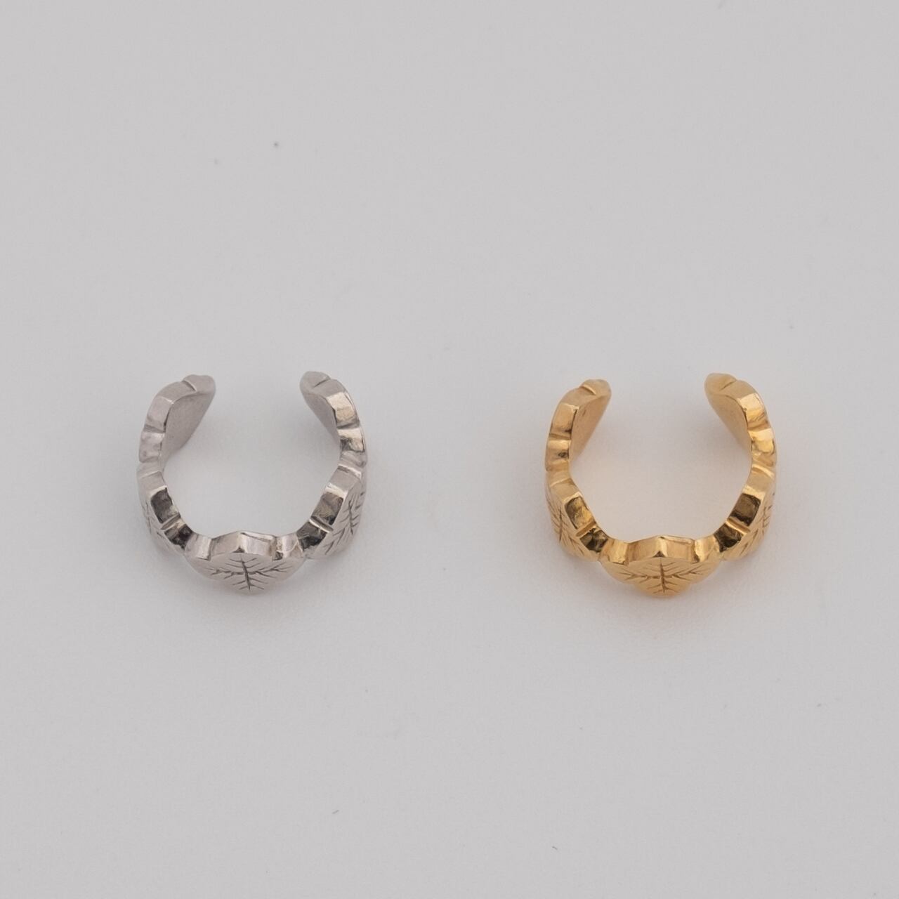幸運の四つ葉が連なった「シロツメクサ」のイヤーカフ。