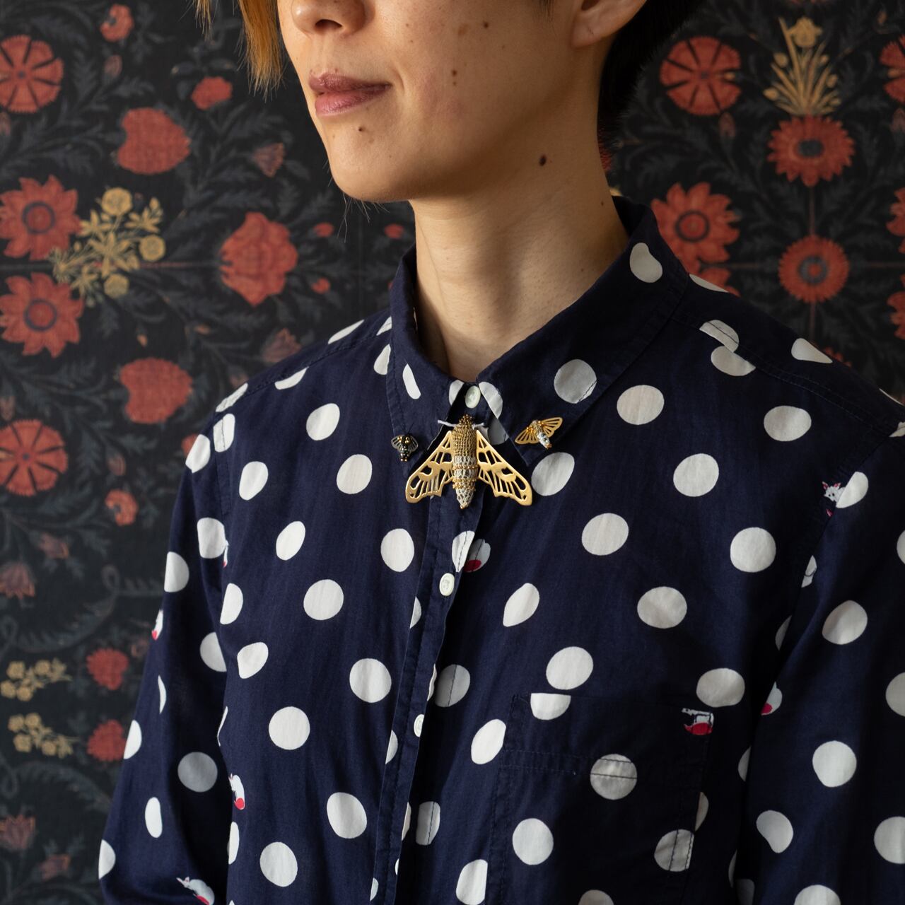 存在感のある大きさや拘って作った触覚、チャーミングな目など、こだわりの沢山詰まったブローチです。