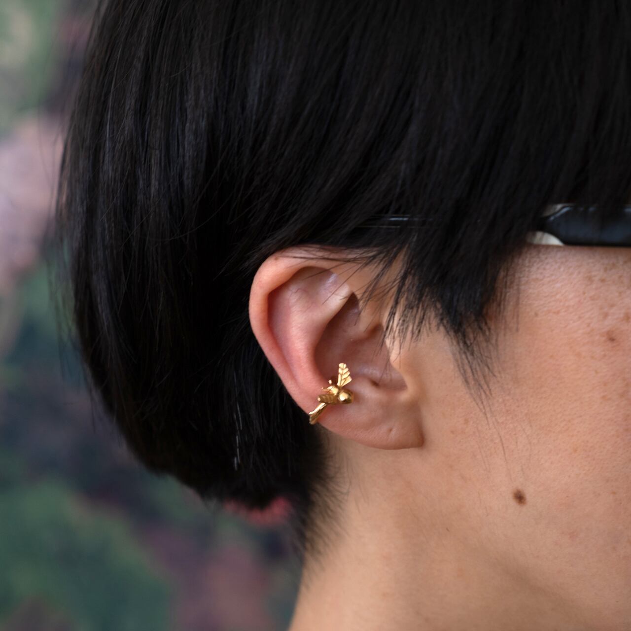 イヤーカフの土台は木の小枝をイメージし、抑揚のあるデザインです。