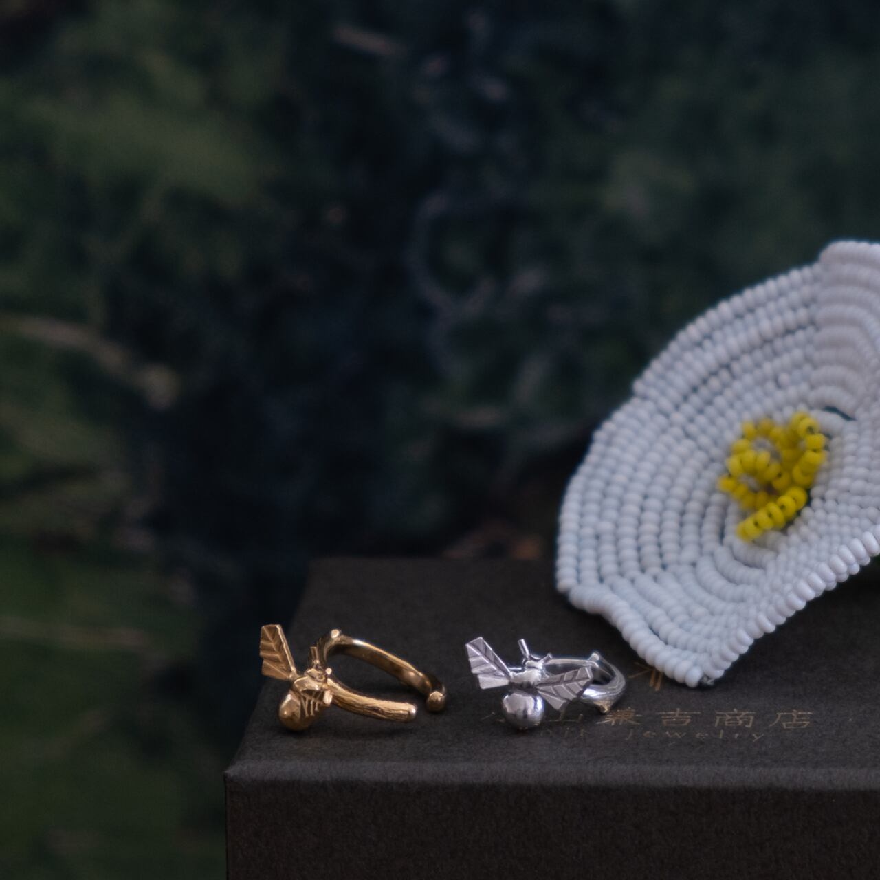 size:たて約8mm x よこ約12mm(蜂部分)/内径1cm、外径1.3cm(土台部分)