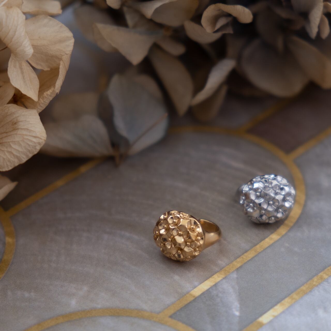 存在感があるのでひとつで付けても華やかですが、重ね付けをするともっと素敵になります。