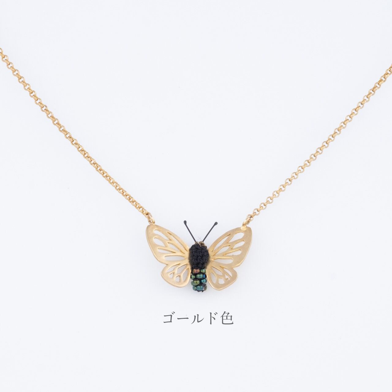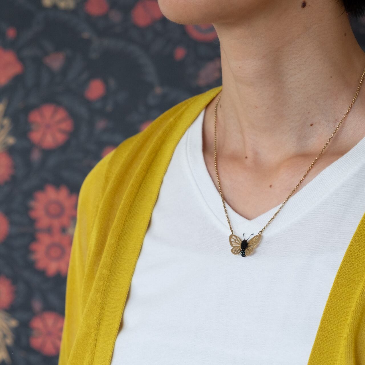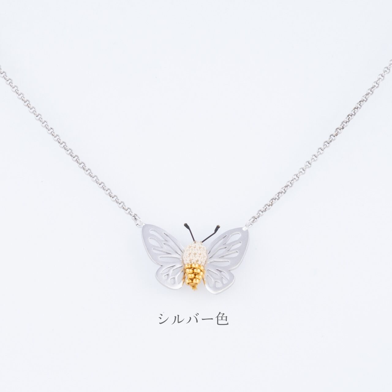 花の周りをひらひらと飛ぶ「ルリシジミ」をモチーフにしたネックレス。
