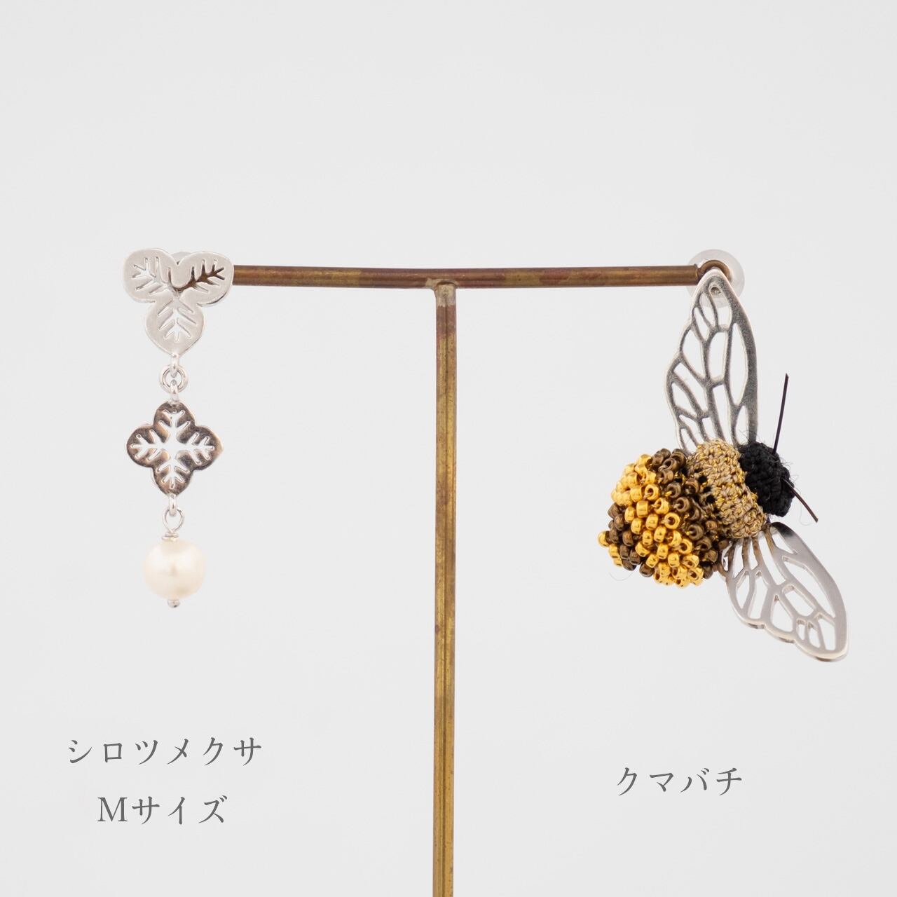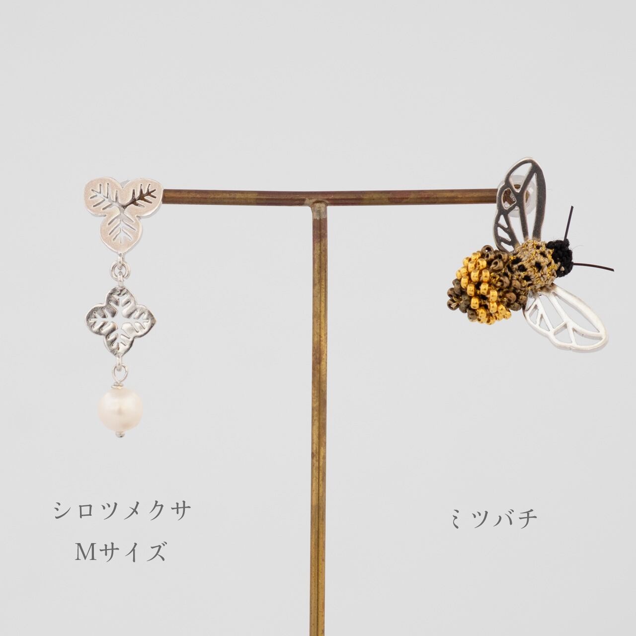虫ピアスや長さの違うシロツメクサと一緒にコーディネートするのがおすすめ。