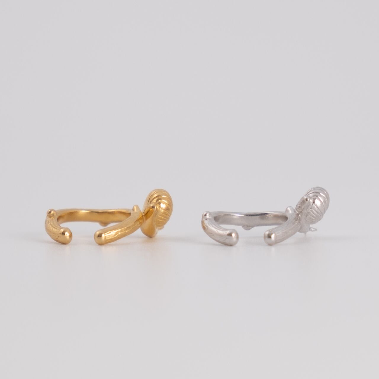 イヤーカフの土台は木の小枝をイメージし、抑揚のあるデザインです。