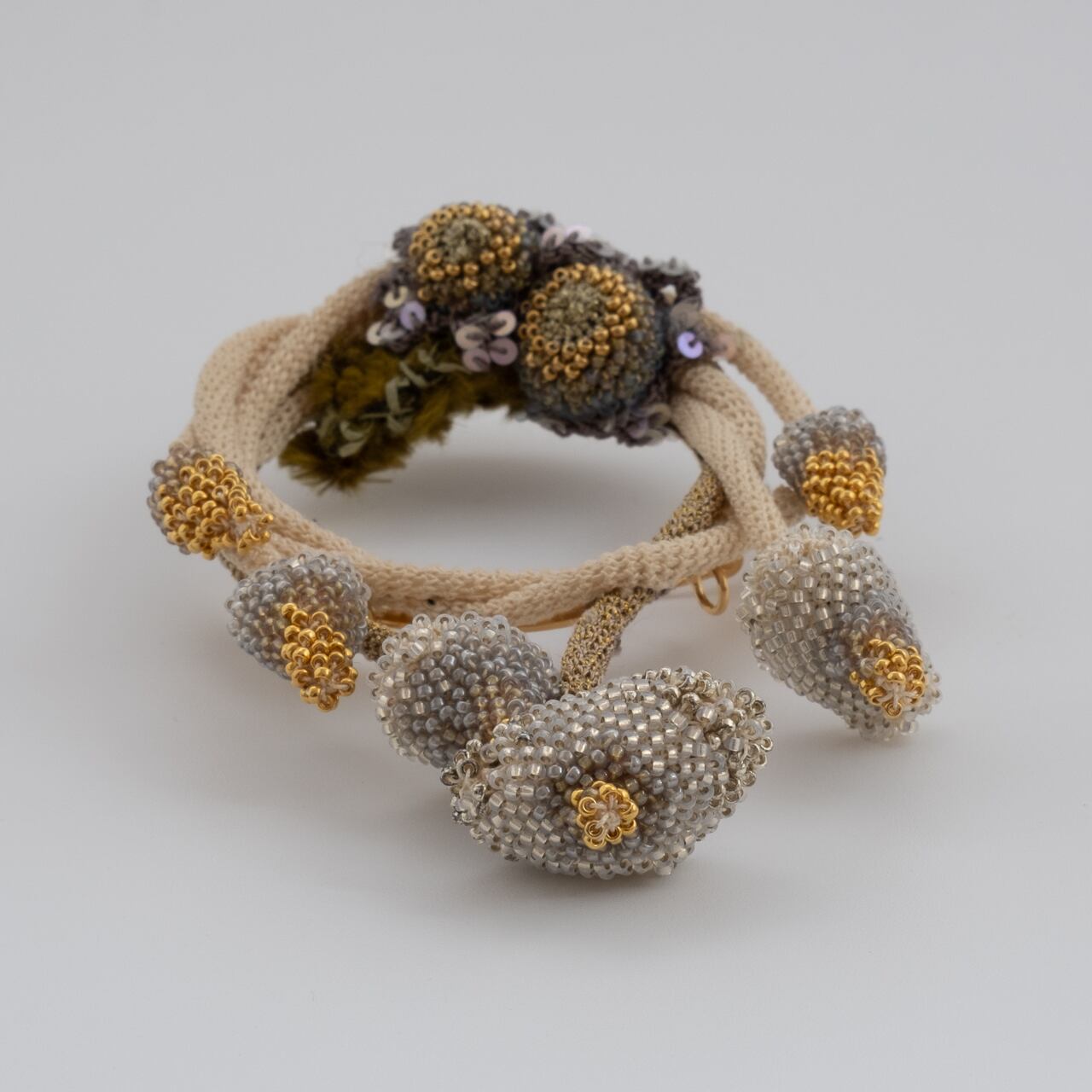 素材:真鍮・ガラスビーズ・コットン糸・スパンコール・シルクコード