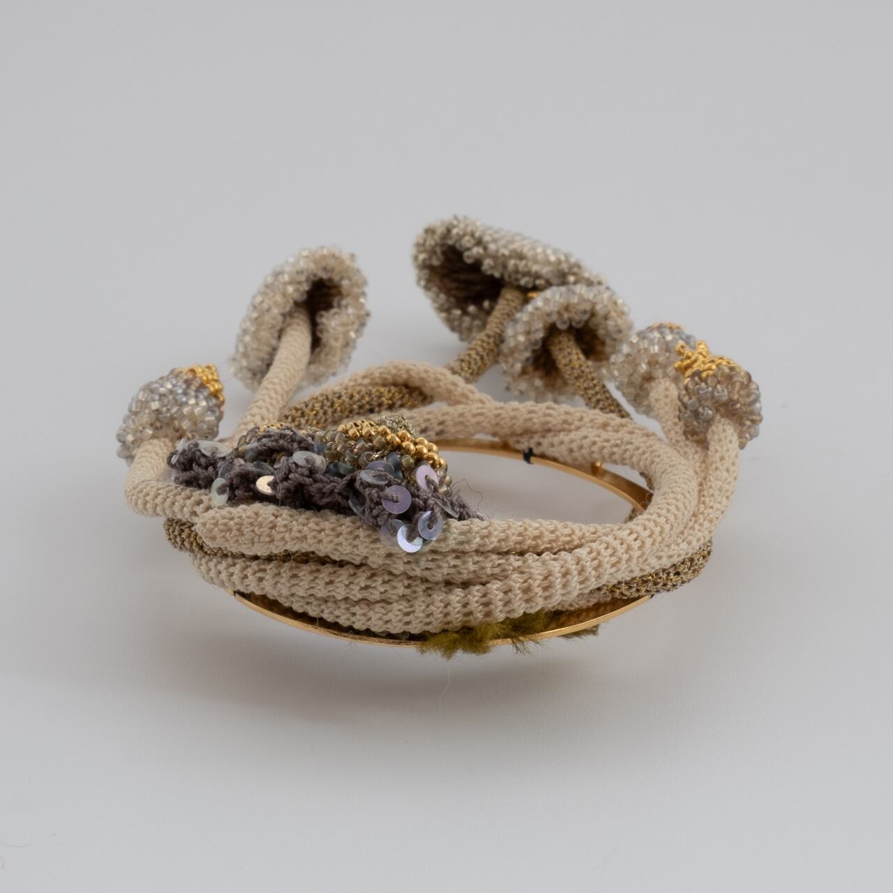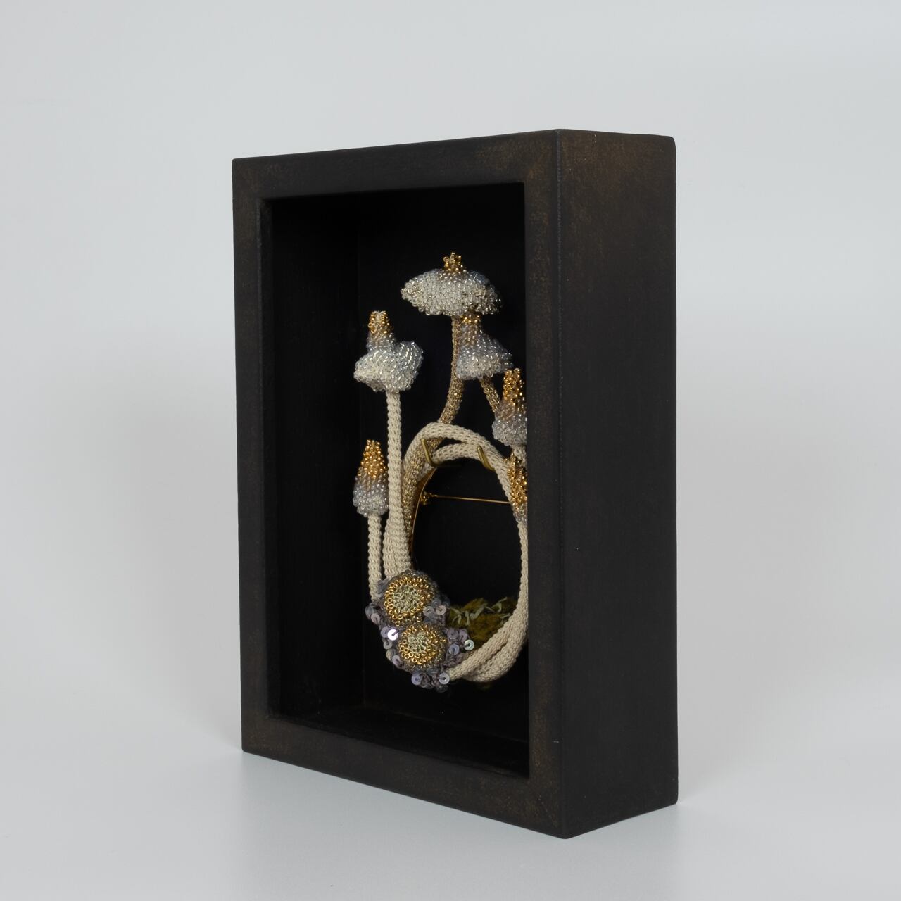 ヒトヨタケを元に自然界ではありえない形にデザインし、ジュエリーとしてのキノコをより強調している。